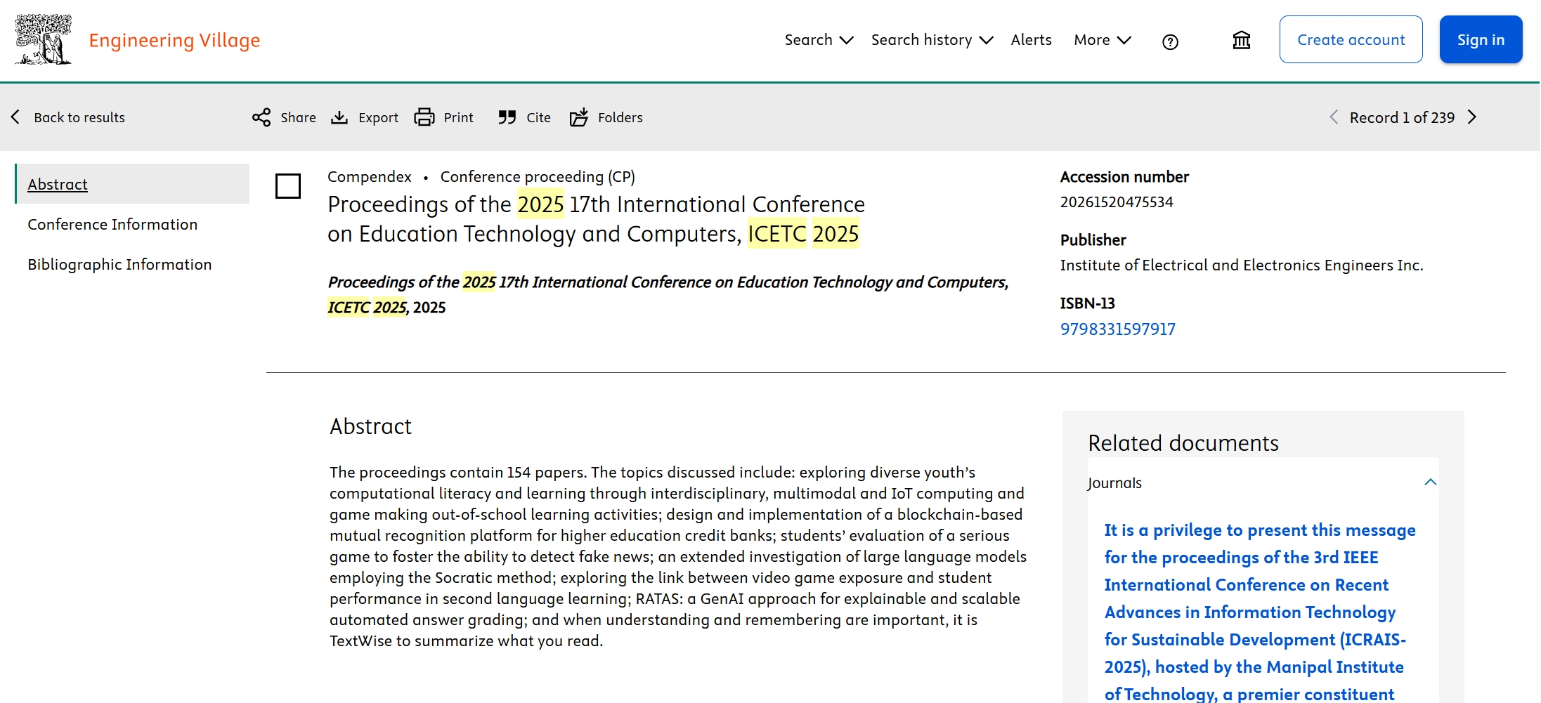 The conference proceedings of ICETC 2025 has been indexed by Ei Compendex and Scopus.